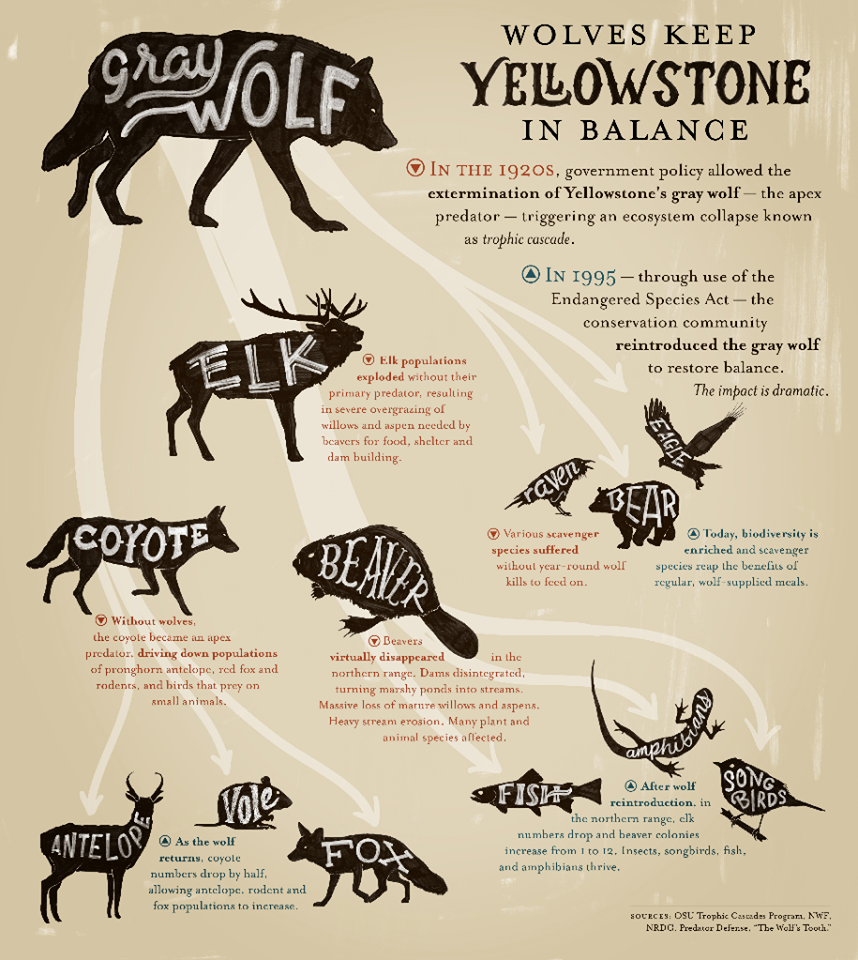 How do wolves play an important role in ecosystem balance? There is a huge body of research that points to this and it is constantly growing. Here is a very user-friendly graphic from EarthJustice illustrating this very point. Click hear for full-sized graphic.