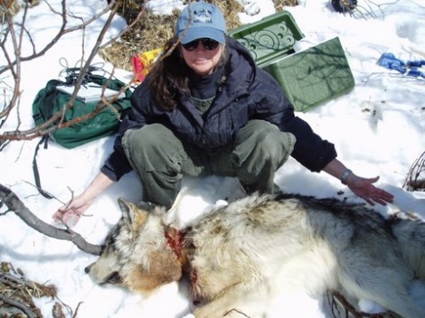 Dr. Denise Albert was able to remove a snare from around a wolf’s neck and treat the animal with antibiotics. NPS photo