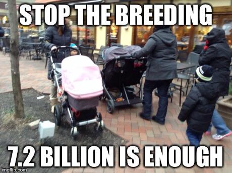 7.2 billion is far more than enough. We are behaving like cancer cells to the body of the earth, sucking all life out of it until there will be no more life to suck. What a shame that the self-purported most intelligent species is the one that cannot grasp our impacts and the impending consequences.