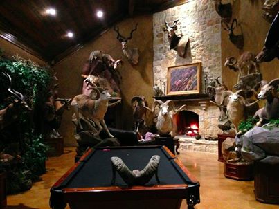 Corey Knowlton is the hunter who won the right to kill an endangered rhino in the Safari Club auction. This is part of trophy room (Big Horn Sheep section – Knowlton claims that he has hunted “over 120 species on every continent” – obviously many animals per species)…
