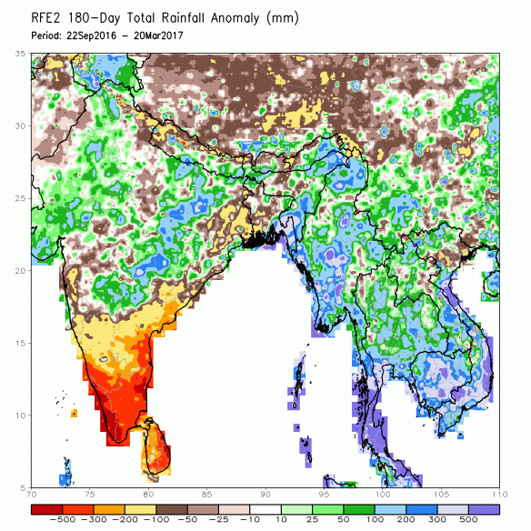 (NOAA rainfall anomaly map for the past six months showing a severe deficit for…