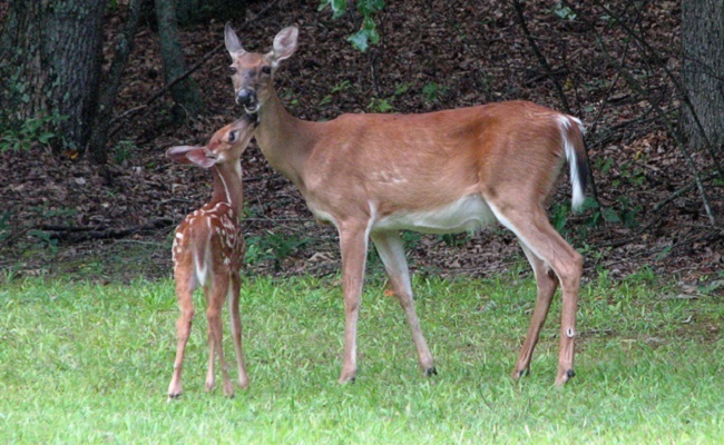 The two deer had been there before. To protect his new plantings, did Dickinson install a fence or try using any other deer repellents? No. Did he make some noise to scare them away? Nope.