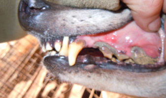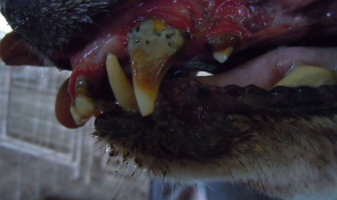 The photos show kenneled dogs with open wounds, rotting teeth and toenails curling into their paw pads.