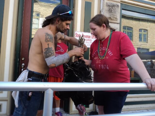 Year after year the town of yellville Arkansas continue to throw live turkeys from airplanes and buildings, they are chased and than harassed by a frenzied crowd, their future is left in the hands of whoever grab some first, looks like this poor turkey is going to be on the table of Mr dillweed and Miss Dickchick