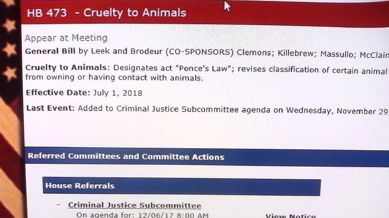 I have presented a proposed amendment to our State Legislature for consideration of amending the current animal cruelty laws specifically F.S. 828.12 (2)(a)(b) which is a third degree felony to impose stricter, harsher punishment and penalties in the event of the abuse, torture,and killing of innocent animals. It will give the Judge more freedom to sentence these abusers to jail while also sentencing them to have no contact or owning animals, etc. at the court’s discretion.