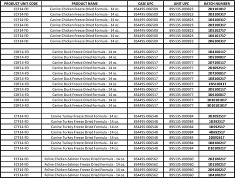 Affected products include Primal Canine and Feline Freeze-Dried Poultry Formulas.