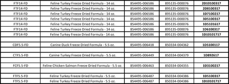 December 21, 2017 — Primal Pet Foods of Fairfield, California, is voluntarily recalling specific lots of 5 of its freeze-dried poultry products because their grind size exceeds the ideal size of ground bone to be fed to dogs and cats.