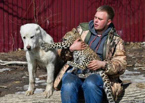 An easygoing dog from Central Asia has formed a close bond with a (rather less easygoing) African leopard inside a zoo in the Russian city of Vladivostok.