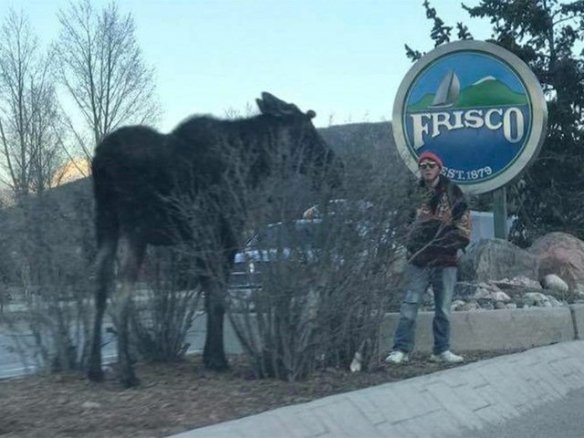 “It is very evident from the photo that the moose is angry, and the man could easily have been attacked and injured, or possibly killed,” District Wildlife Manager Elissa Slezak of Summit County said in a statement yesterday. “You can clearly see that the moose’s ears are pinned…