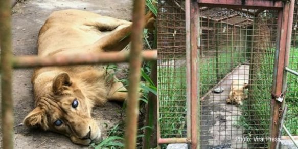 The young lioness, named Lyka, lies listless in a narrow, rusty cage. Born with an eye condition, the 5-year lion has deteriorated to the point where she even can’t see the zoo visitors gawking at her enclosure.