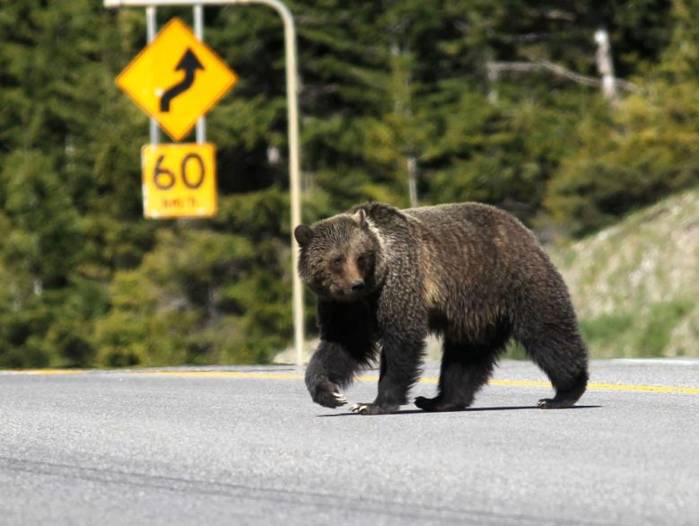 A grizzly bear runs across Highway 93 in Kootenay National Park on June 7, 2014.Leah Hennel / Calgary Herald/Postmedia Network