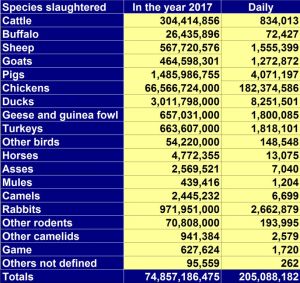 Every day I see posts using fanciful estimates about the number of individuals our species slaughters each year. There are even suggestions (often circulated by those seeking to claim credit – and frequently, donations) that slaughter numbers are falling.