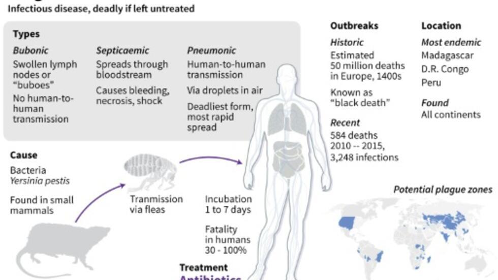 Pneumonic plague can prove fatal in 24 to 72 hours and is the “most virulent form of plague,” according to the World Health Organisation (WHO), while the bubonic form is less dangerous.