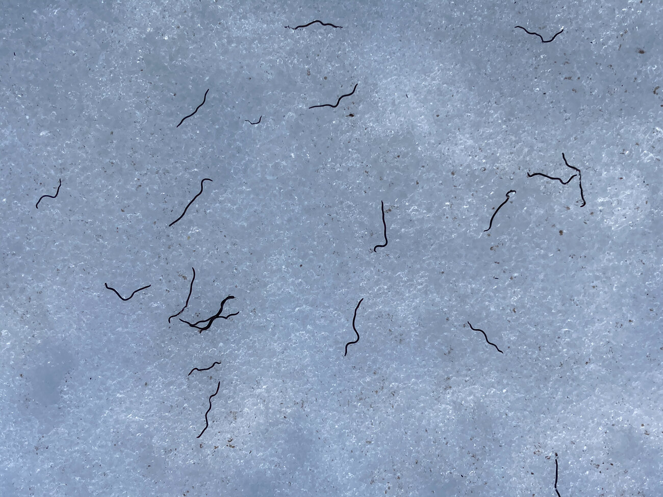 These thread-like worms, each only about an inch long, wiggle up en masse in the summertime, late in the afternoon, to do — what? Scientists don’t know. It’s just one of many mysteries about these worms, which have barely been studied, even though they’re the most abundant critter living up there in the snow and ice.