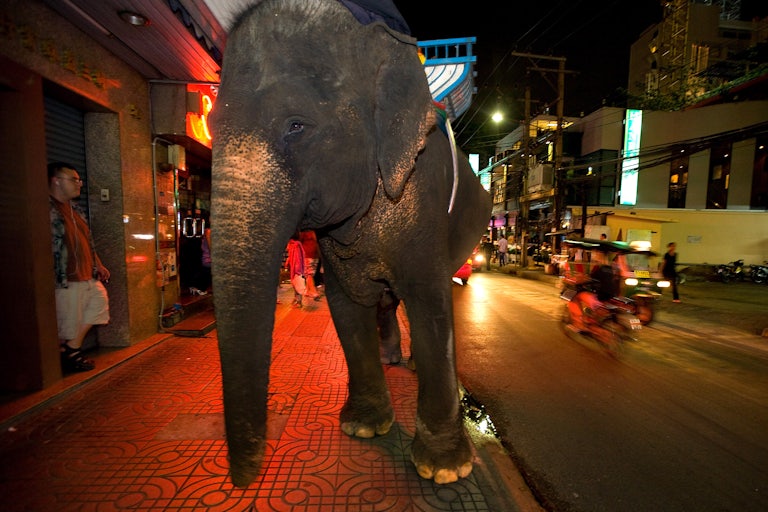 An elephant roams the streets of Bangkok, Thailand, in 2008