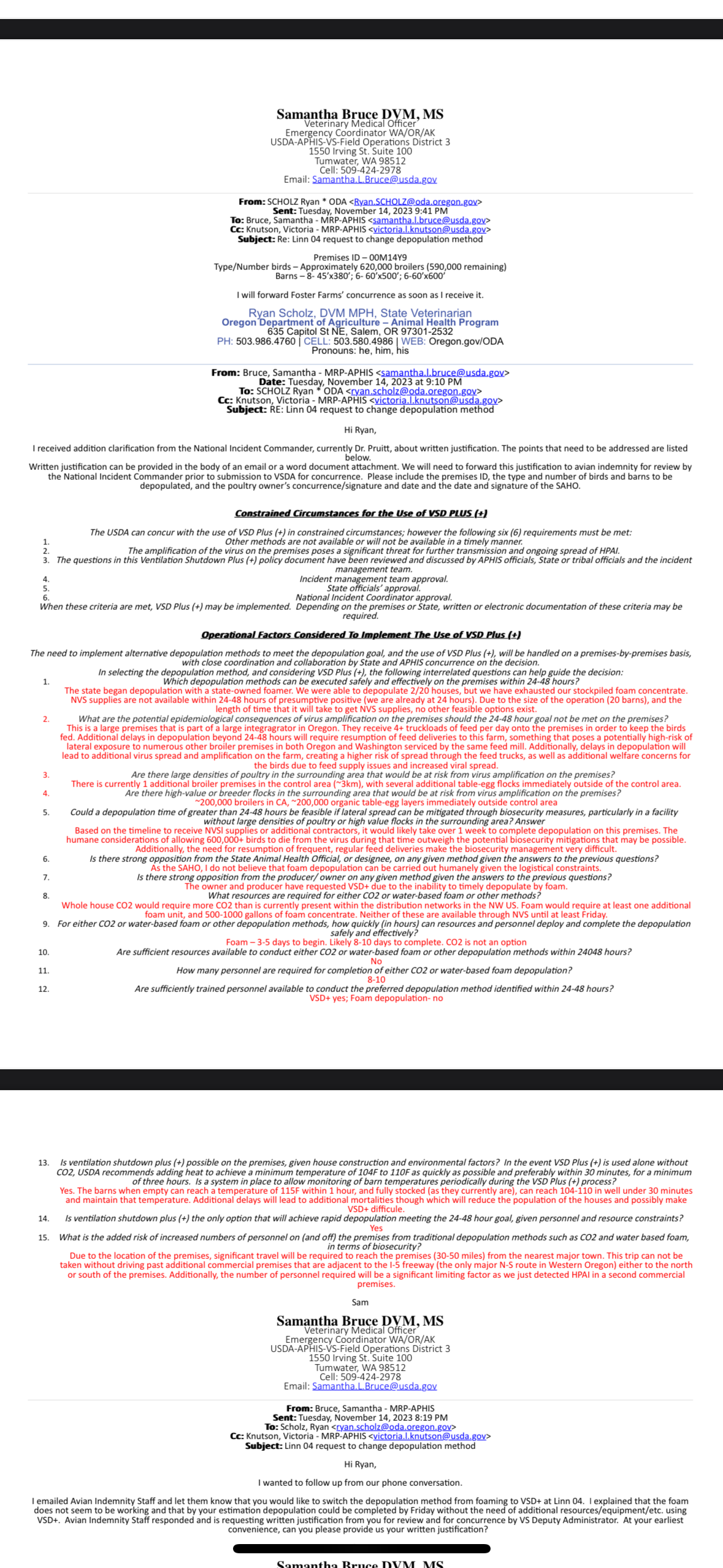 Yet we bail out wealthy producers — whether we buy from their businesses or not. Since 2022, more than $715 million has gone to bail out companies that lost birds to avian influenza, including many that killed their birds using VSD+. Jennie-O Turkey Store received more than $85 million in bird flu bailout money while their parent company, Hormel Foods, recorded net sales surpassing $12.1 billion in 2023. Tyson Foods took more than $29 million while CEO Donnie King received more than $13 million in compensation. The top 10 companies took over 41% of the total indemnity payments, and many of them failed to put plans in place to use less cruel, American Veterinary Medical Association “Preferred” methods of ending the lives of their animals.