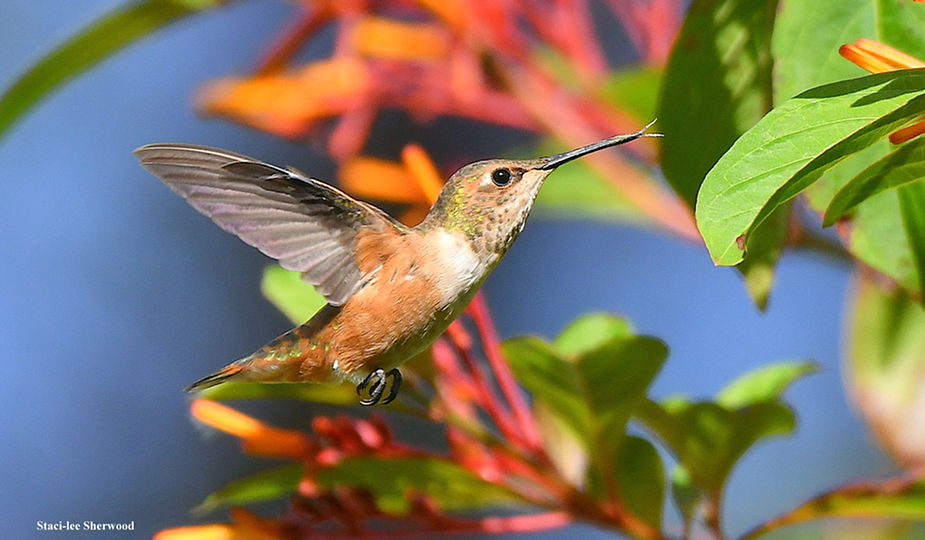Rufous Hummingbirds can travel 4000 miles to get to their breeding grounds. A miracle since they only weigh about .02 ounces. Their migration is from western Mexico up to their Alaska breeding ground. A few have made it to Florida to winter. Their lifespan is only 3-5 years so this is an extraordinary migration