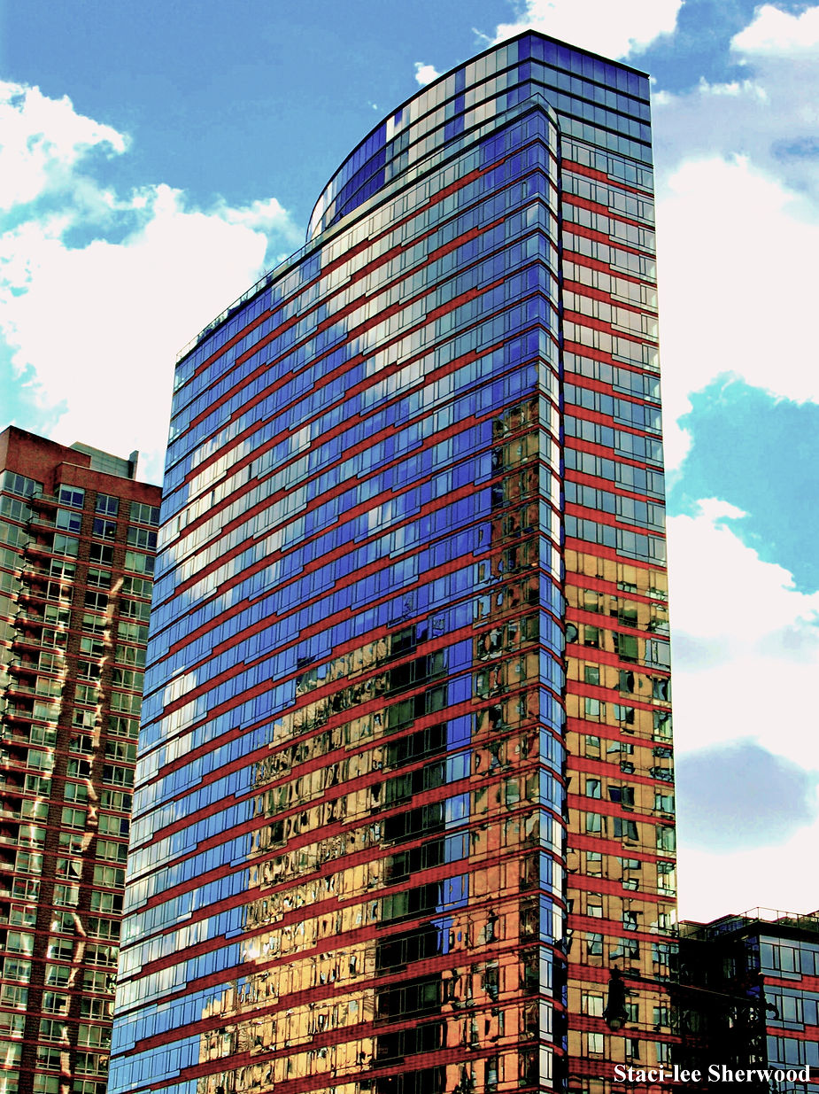 Many modern buildings in cities look like this, a giant wall of super shiny glass. At night the buildings are light up inside so nighttime navigation can be just as dangerous. Imagine being a bird flying into this and thinking you’re flying into the sky. Buildings like these cast a reflection that can be blinding. Unlike skyscrapers, lower buildings can reflect trees and vegetation making it seem as though they are flying toward a safe landing. Many buildings have parking lots from above look like ponds often causing birds, even huge flocks, to crash or strand once they realize they’ve landed on concrete not water. This building reflects another building but also the sky making it seem as if the bird need only to fly over the reflected image, not the actual building.