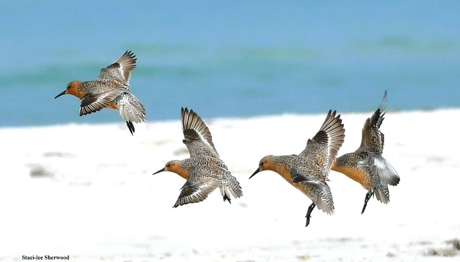 Red Knots have the longest migration well over 9000 miles each trip. They can travel from as far south as southern Argentina to breeding ground in the Arctic tundra