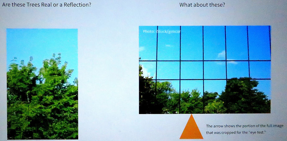 This is an excellent example of what birds see when the reflection is vegetation. It’s easy but deadly mistake. Photo credit: Minnesota Bird Coalition