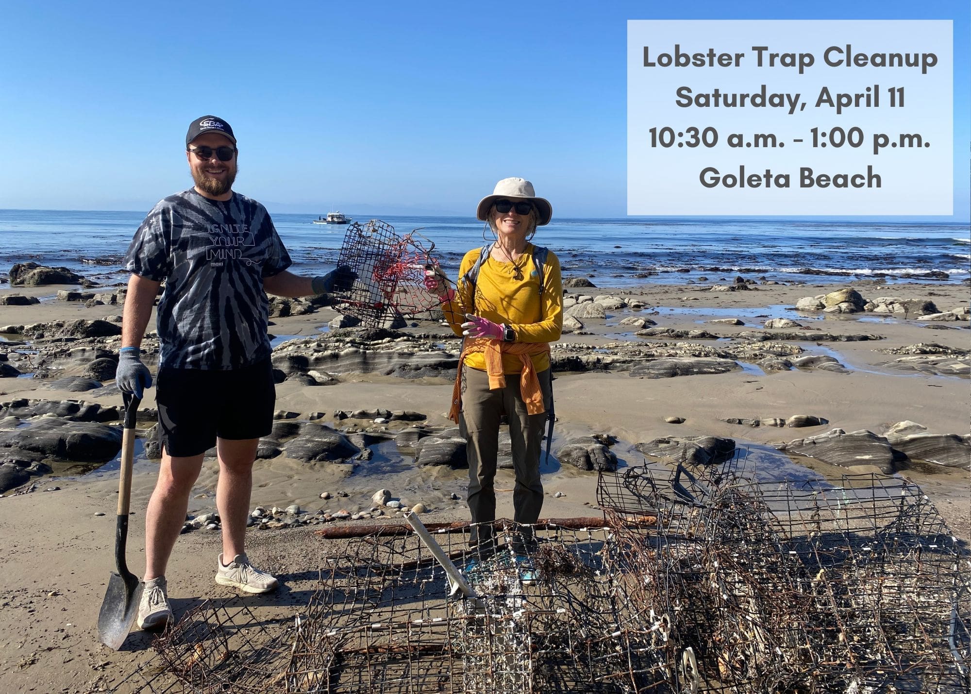 On April 11, from 10:30 am to 1:00 pm, the public is invited to help dig out buried lobster traps and place them at collection points along the beach where they will be loaded onto a commercial fishing vessel and transported to the Santa Barbara Harbor for reuse or proper disposal.