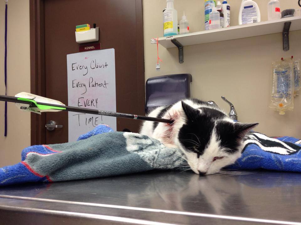 His crossbow, a TenPoint brand Pro Fusion model, is 10 years old and shoots at 300 feet per second.