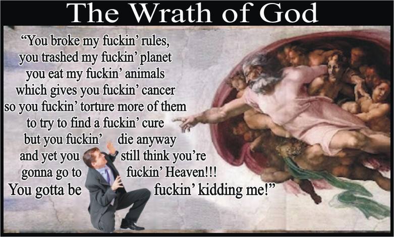 I left there thinking: What about those who are intentionally cruel to animals or other people—are they also a reflection of God? If so, why is He so two-faced, when He’s supposed to be all about love and kindness? Did He bring selfishness and cruelty into this world just to fuck with us, or is He, Himself, in fact not infallible?